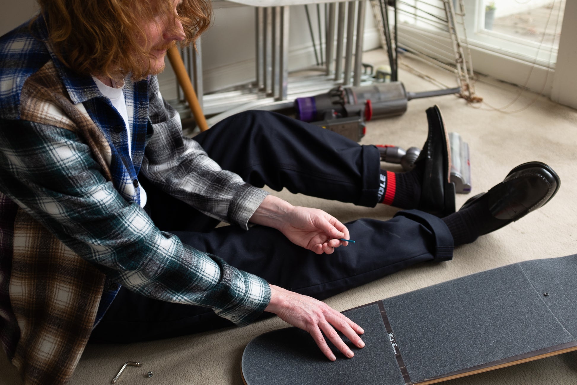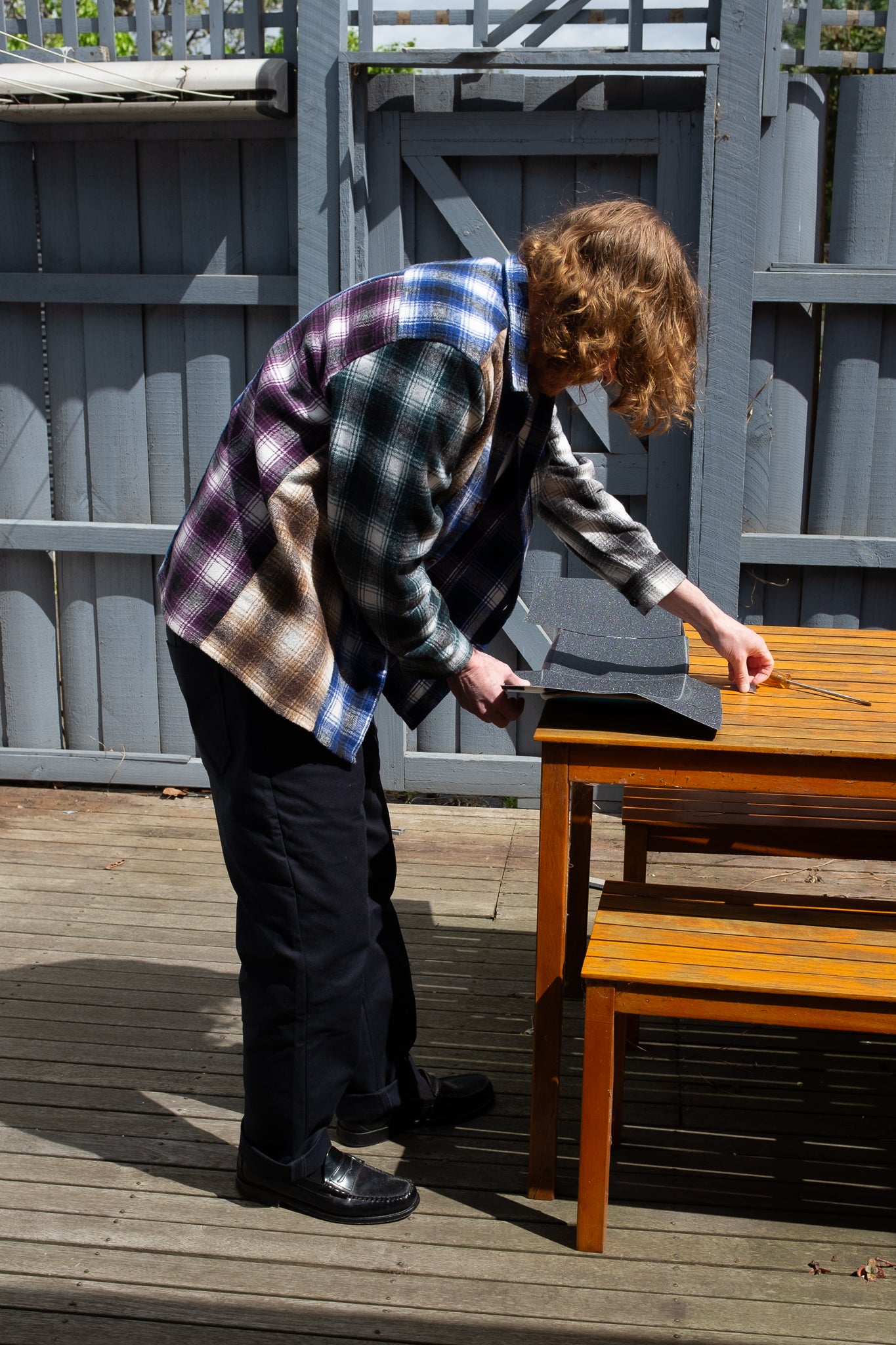 Notes: These are the latest and best version of my dream work pants - not actual work, but the kind of work I do - sitting around in an office or at home, going for a skate, going for walks and taking photos and stuff. They are nice and loose without being ridiculous, with a 4cm pleat on the front.